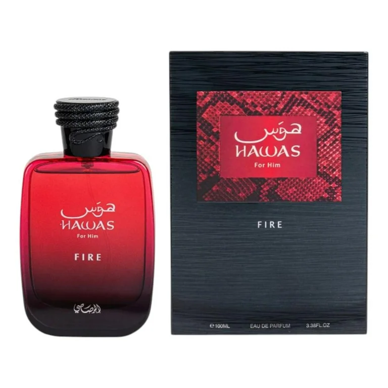 Hawas Fire de Rasasi es una fragancia de la familia olfativa Aromática Acuática para Hombres y Mujeres. Esta fragrancia es nueva. Hawas Fire se lanzó en 2025. La Nota de Salida es esclarea; las Notas de Corazón son Notas marinas y jazmín egipcio; las Notas de Fondo son ámbar, Notas minerales y ámbar gris.